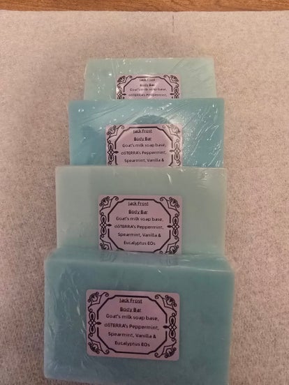 When a pure quality goat's milk soap base meets 4 amazing oils, what do you get? The Jack Frost Body Bar!
